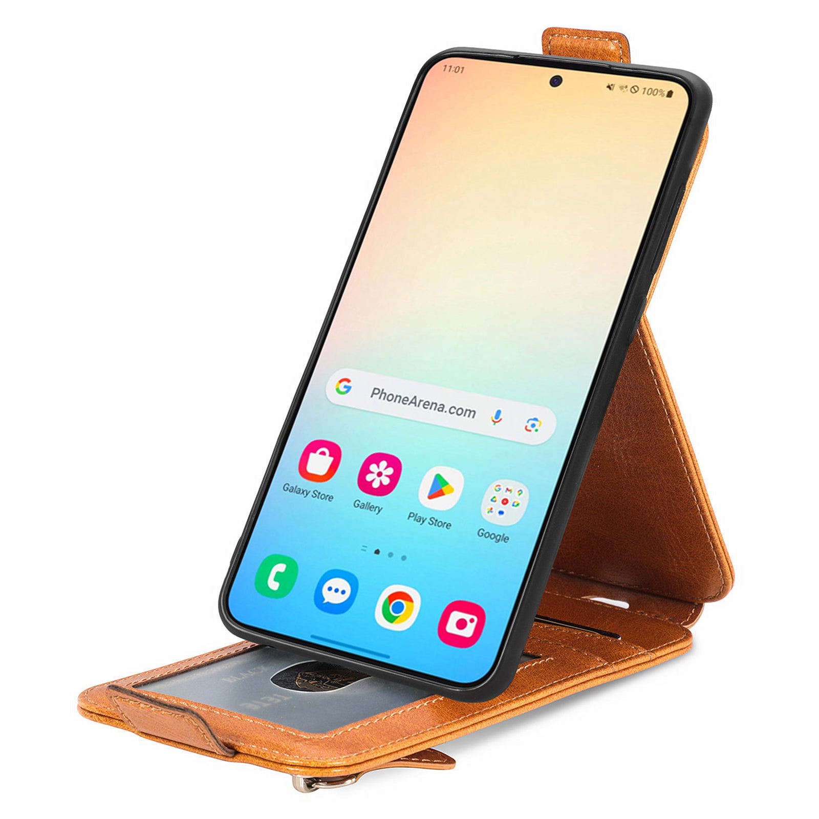 For Samsung Galaxy S24 Leather Case Zipper Wallet Phone Cover Mobile Accessories Wholesale - Brown