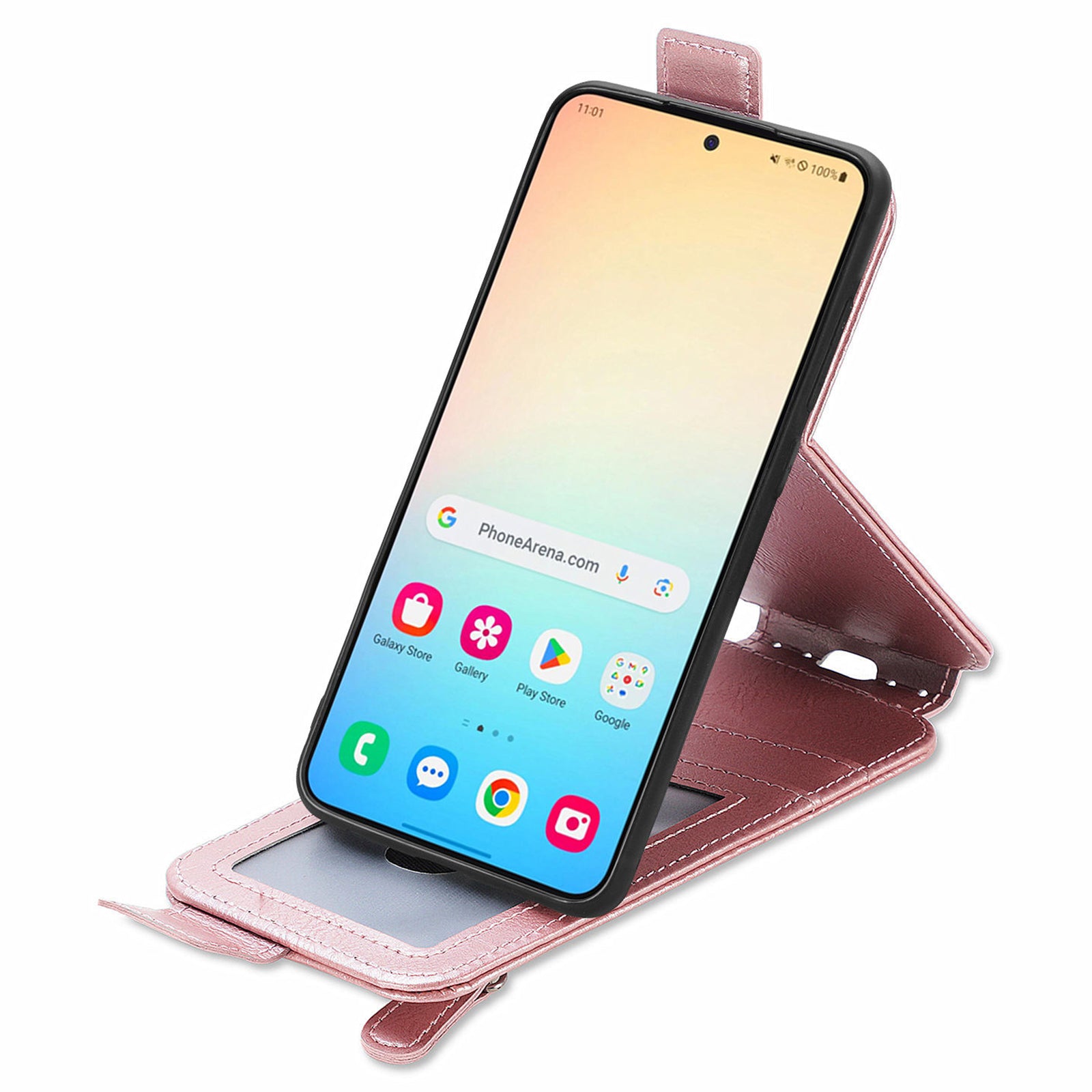 For Samsung Galaxy S24 Leather Case Zipper Wallet Phone Cover Mobile Accessories Wholesale - Rose Gold