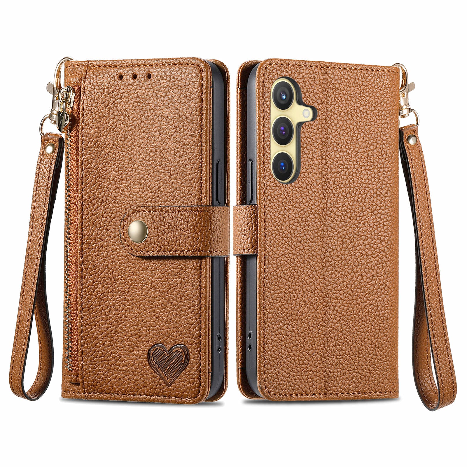 For Samsung Galaxy S24 Wallet Case RFID Blocking Leather Phone Cover - Brown