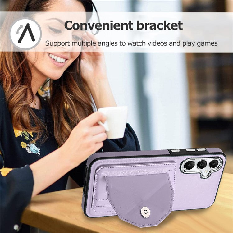 YB Leather Coating Series-4 for Samsung Galaxy S24 Case Card Slots Phone Kickstand Cover - Purple