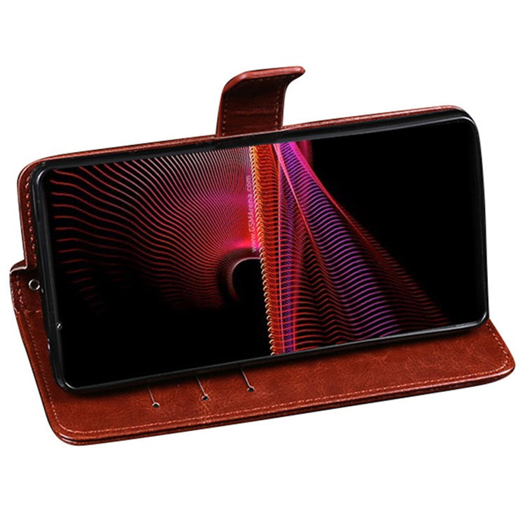 IDEWEI Crazy Horse Texture Stand Wallet Design Folio Flip Leather Phone Shell Case for Sony Xperia 1 III 5G - Yellow