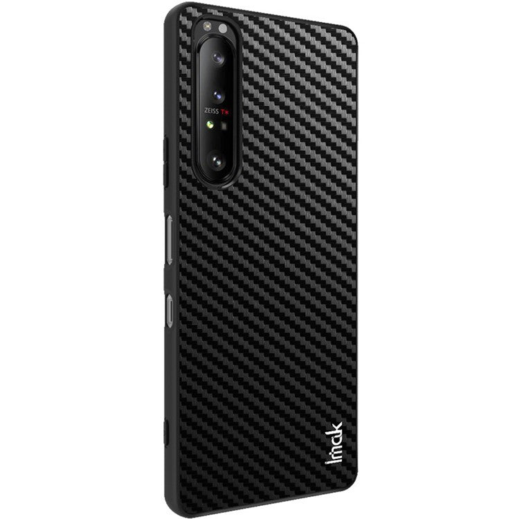 IMAK LX-5 Series PU Leather Coating Hard PC + Soft TPU Fall Protection Hybrid Cover Phone Case with Screen Protector for Sony Xperia 1 III 5G - Carbon Fiber Texture