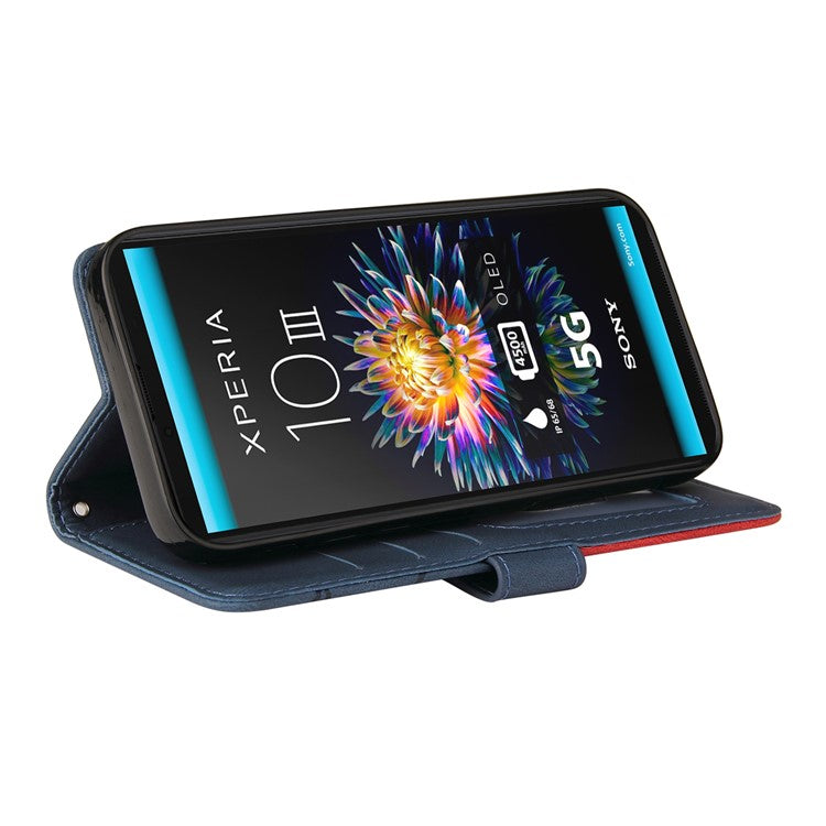 KT Leather Series-1 Fashionable Bi-colour Splicing Style Stand Leather Wallet Case Cover for Sony Xperia 10 III 5G / Xperia 10 III Lite - Blue