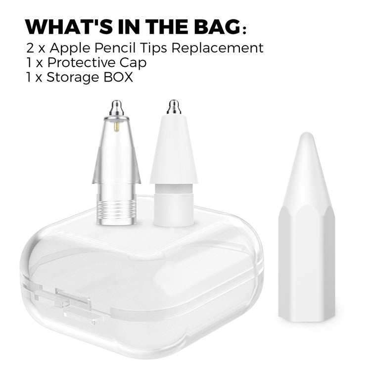AHASTYLE WG80 For Apple Pencil 2nd / 1st Generation 2Pcs Capacitive Stylus Tip Replacement Pen Nibs - Transparent + White