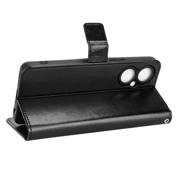 For TECNO Camon 19 4G Shockproof Cell Phone Wallet Case Crazy Horse Texture PU Leather+TPU Stand Cover Protective Shell - Black