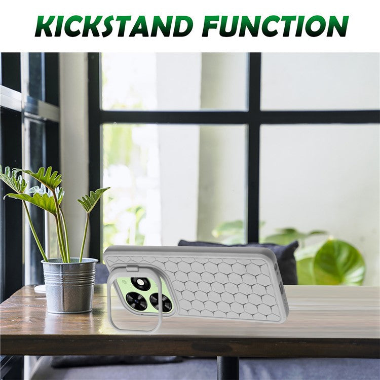 For TECNO Pop 8 Case Heat Dissipation Lens Frame Kickstand TPU Phone Cover - Grey