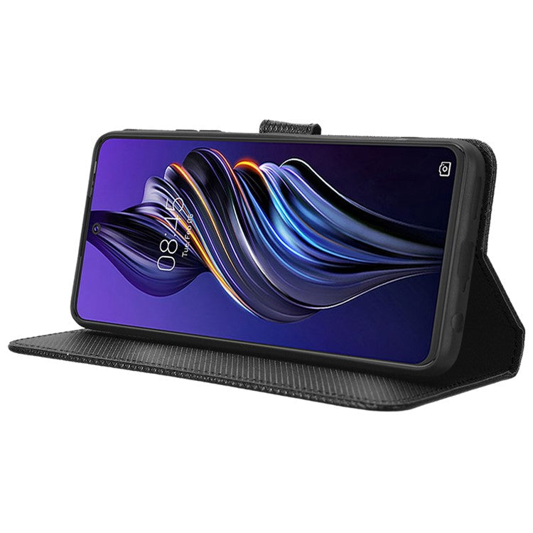For TECNO Pova 3 4G Diamond Texture Protective Phone Shell Magnetic Clasp PU Leather Stand Scratch-Resistant Phone Wallet Case - Black