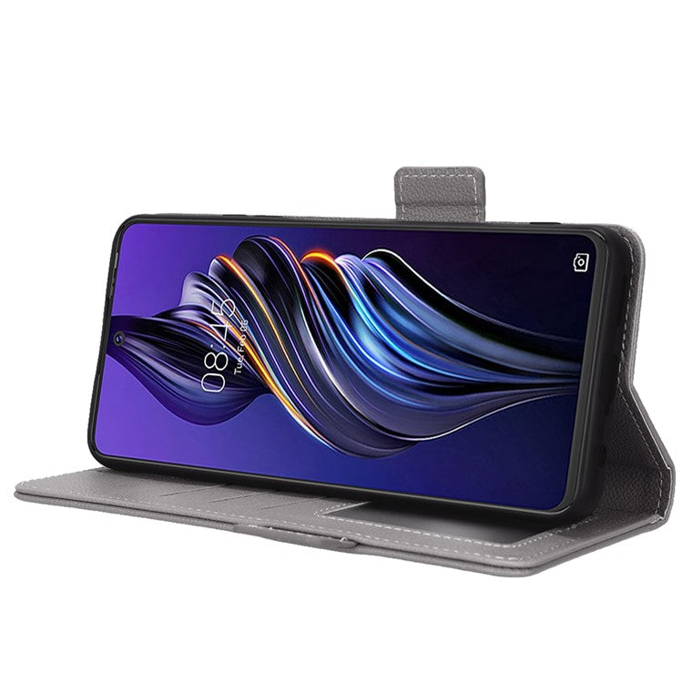 For TECNO Pova 3 4G LF7n Full Protection Litchi Texture Phone Cover PU Leather Dual Magnetic Clasp Wallet Stand Case - Grey