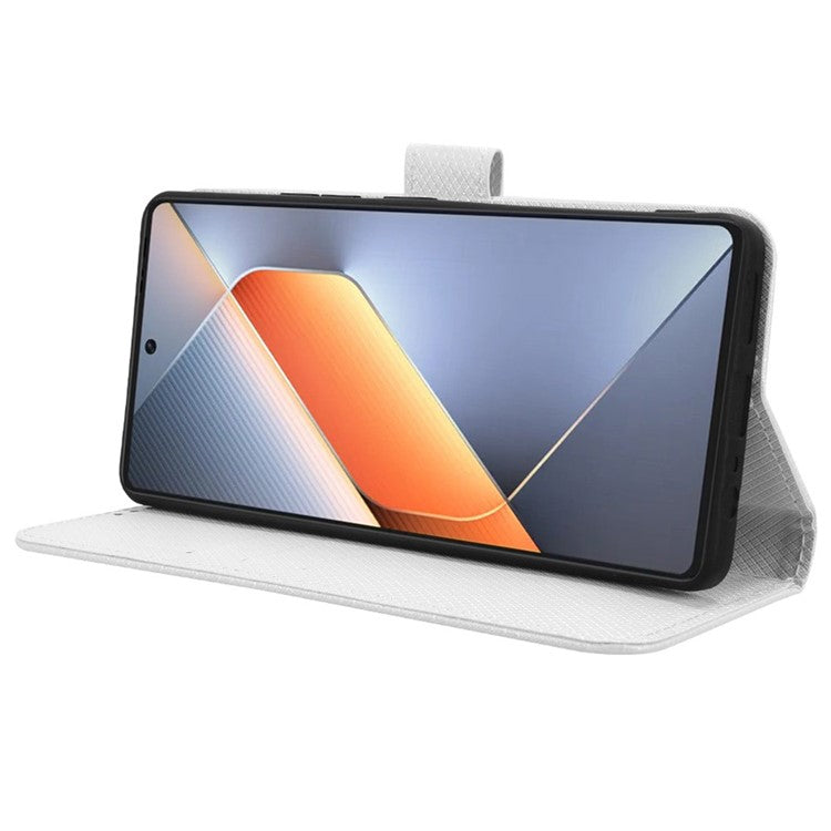 For TECNO Pova 6 4G Protective Case Diamond Texture Leather Phone Cover with Wallet - White
