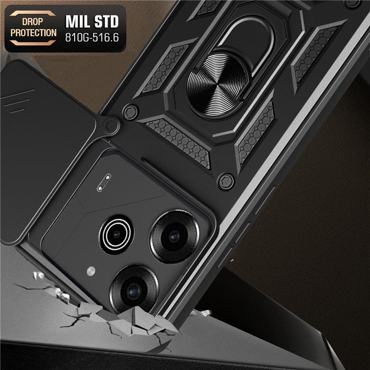 For TECNO Pova 6 Pro 5G Case with Slide Camera Lid PC+TPU Kickstand Phone Cover - Black