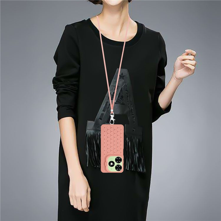 For TECNO Spark 20 Kickstand Case TPU Phone Cover with Lanyard - Pink