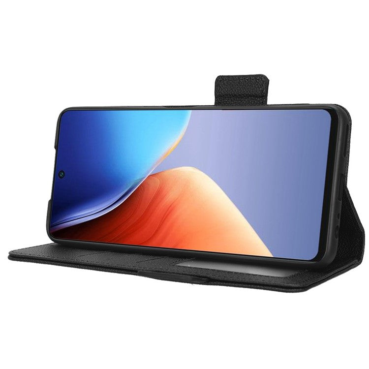 Litchi Texture Phone Cover for TECNO Camon 19 Pro 4G / 5G, Anti-Collision PU Leather Dual Magnetic Clasp Phone Wallet Stand Case - Black
