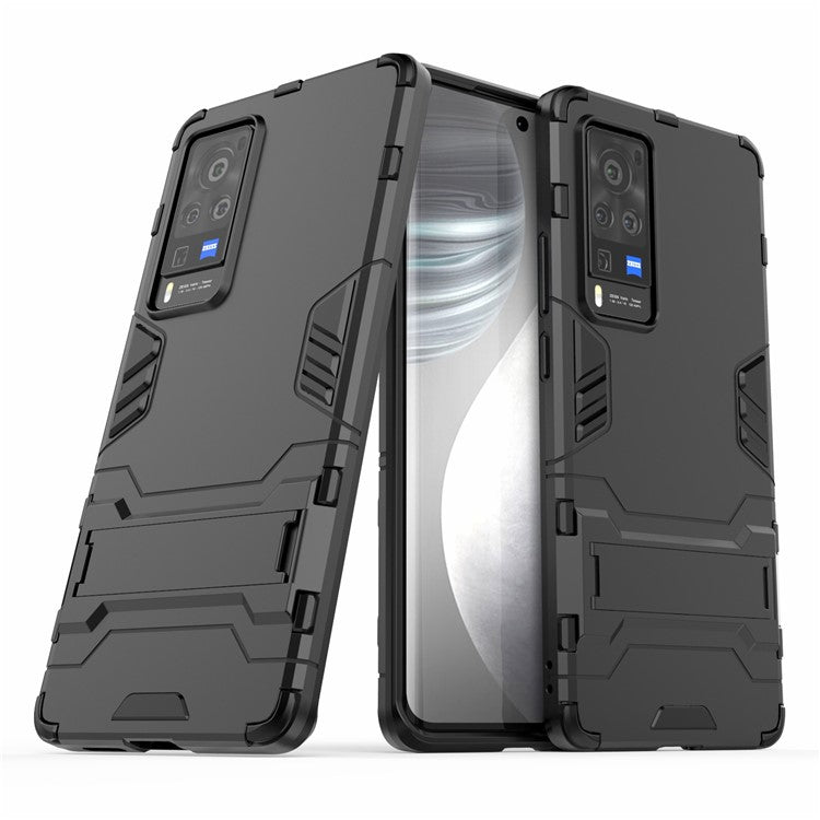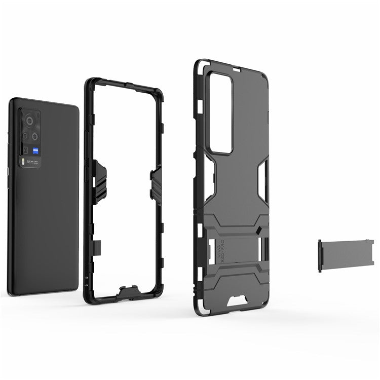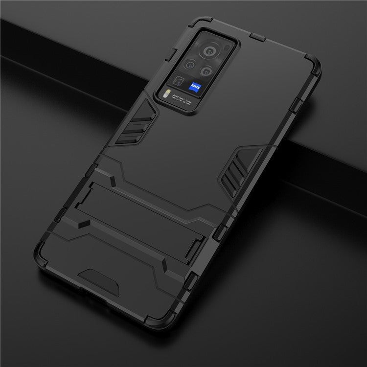 2 in 1 Dual Layer Plastic + TPU Hybrid Phone Cover Case with Kickstand for vivo X60 Pro (China) - Black