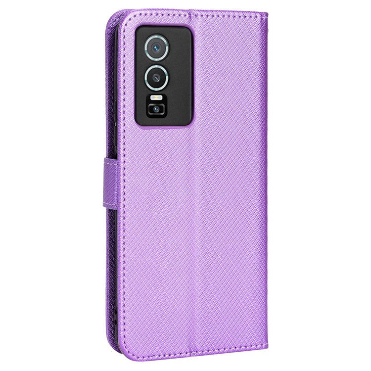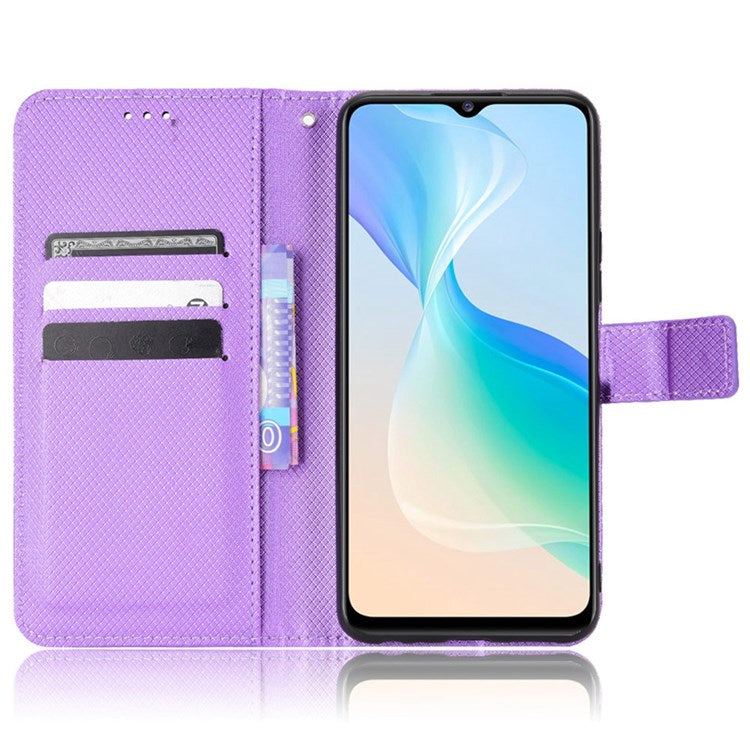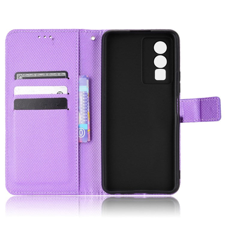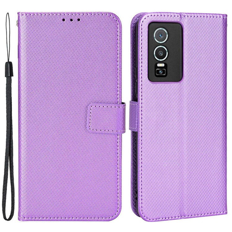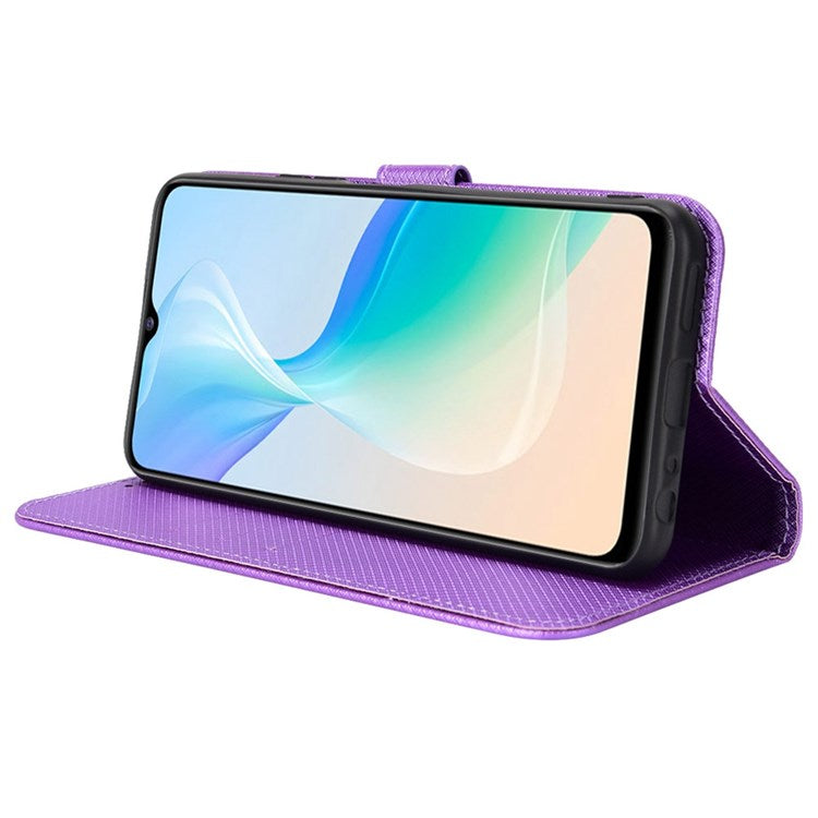 All-inclusive Protection Phone Case for vivo Y76 5G Anti-fall PU Leather Magnetic Wallet Stand Shell Folio Flip Cover with Diamond Texture - Purple