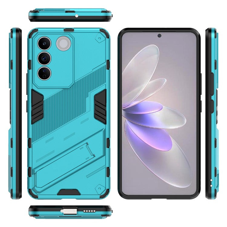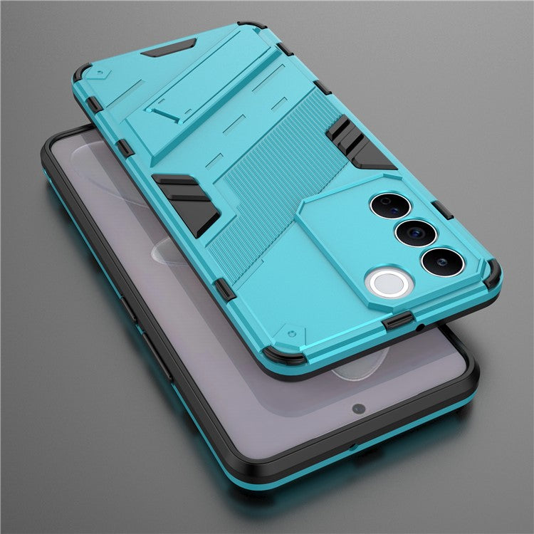 Anti-drop Phone Case For vivo S16e 5G, Kickstand Soft TPU Hard PC Phone Back Cover - Baby Blue