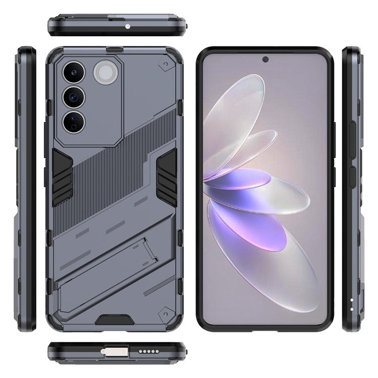 Anti-drop Phone Case For vivo S16e 5G, Kickstand Soft TPU Hard PC Phone Back Cover - Dark Blue