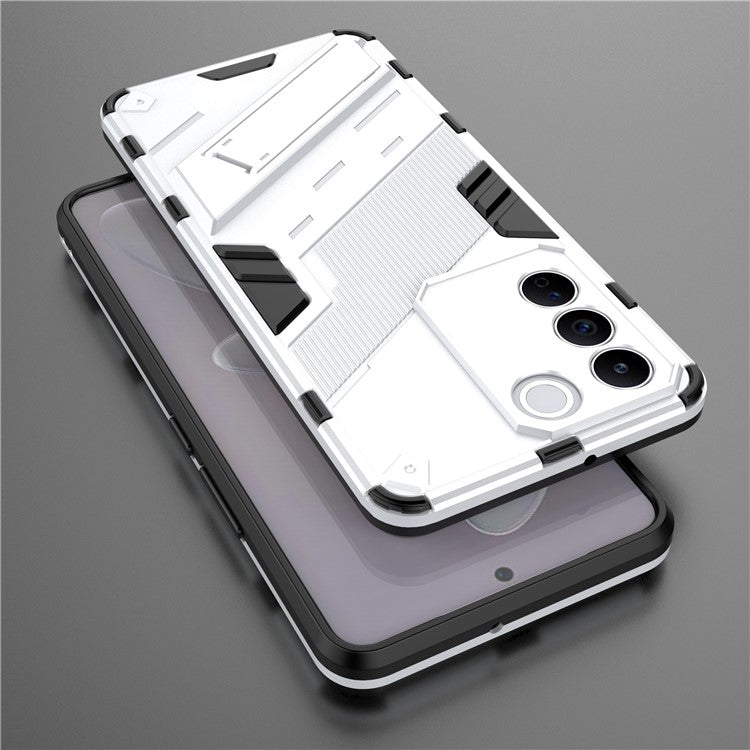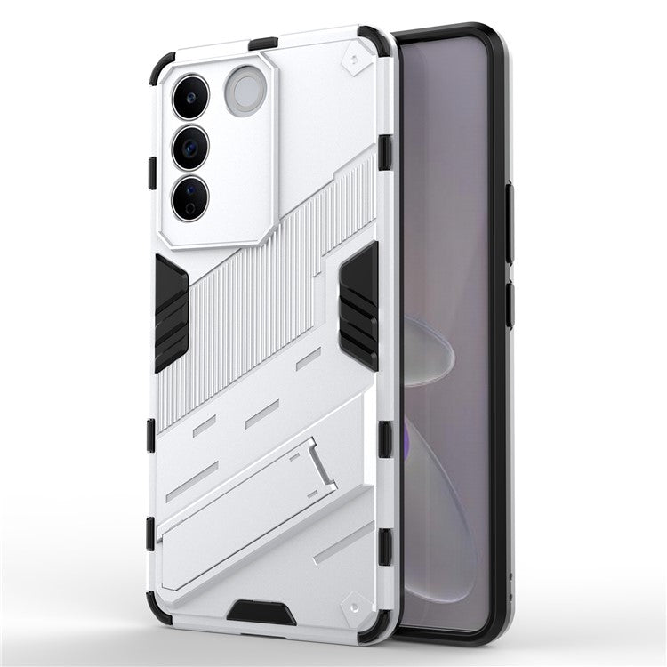 Anti-drop Phone Case For vivo S16e 5G, Kickstand Soft TPU Hard PC Phone Back Cover - White