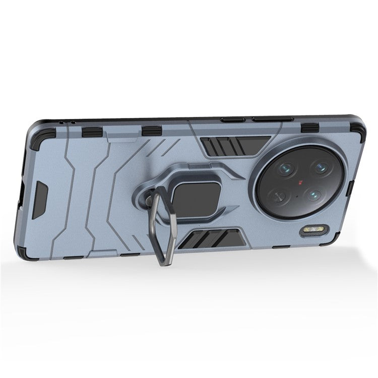 Anti-drop Phone Case for vivo X90 Pro 5G, Ring Kickstand Hard PC + Soft TPU Protective Cover - Blue