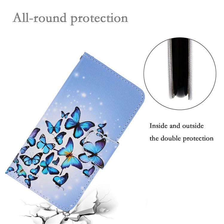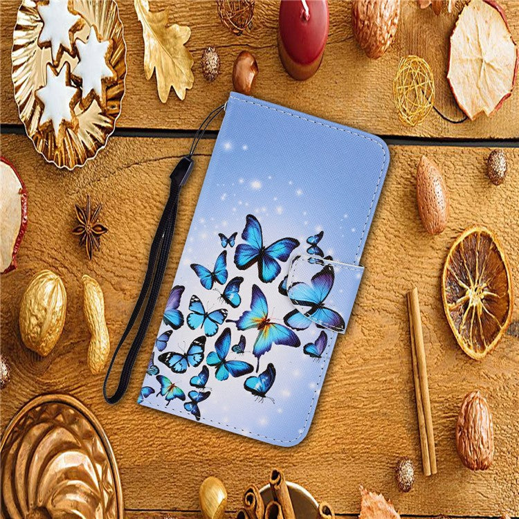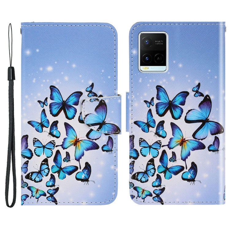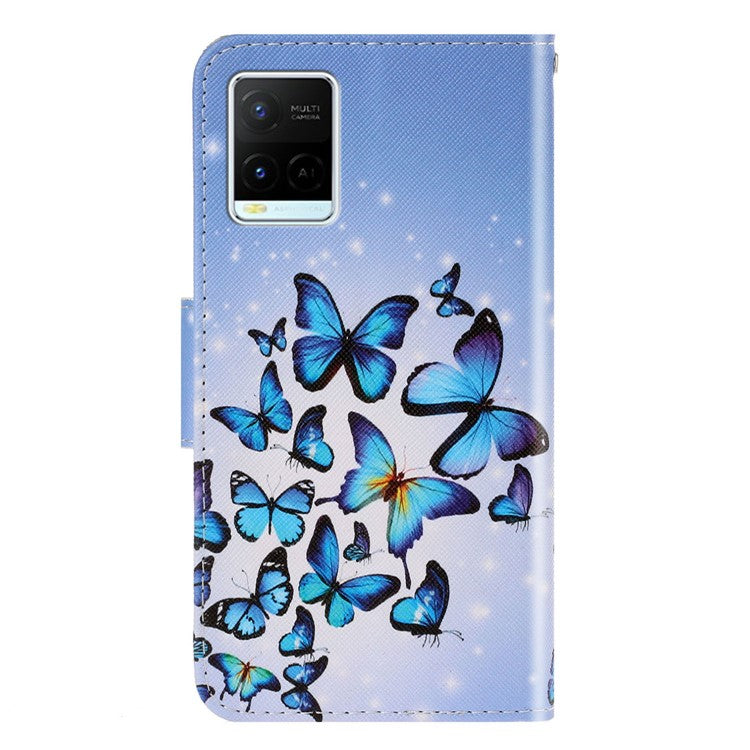 Anti-scratch Drop-proof Pattern Printing Case PU Leather Flip Wallet Cross Texture Stand Cover for vivo Y21/Y21s/Y33s - Butterflies