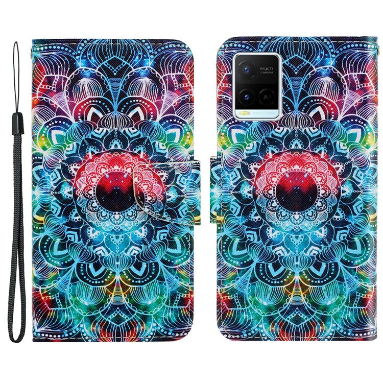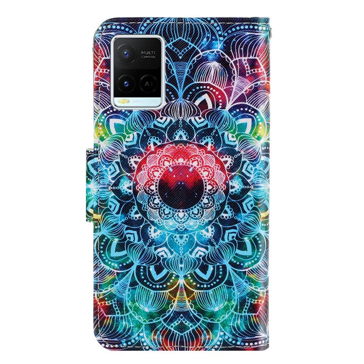 Anti-scratch Drop-proof Pattern Printing Case PU Leather Flip Wallet Cross Texture Stand Cover for vivo Y21/Y21s/Y33s - Mandala Flower