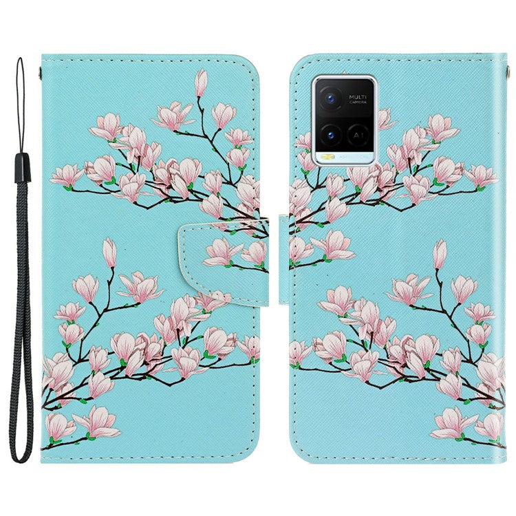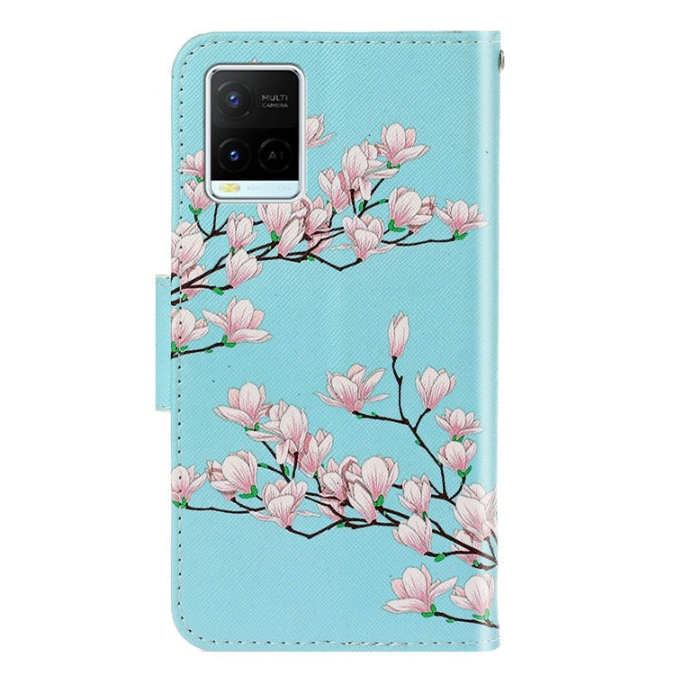 Anti-scratch Drop-proof Pattern Printing Case PU Leather Flip Wallet Cross Texture Stand Cover for vivo Y21/Y21s/Y33s - Pink Flower