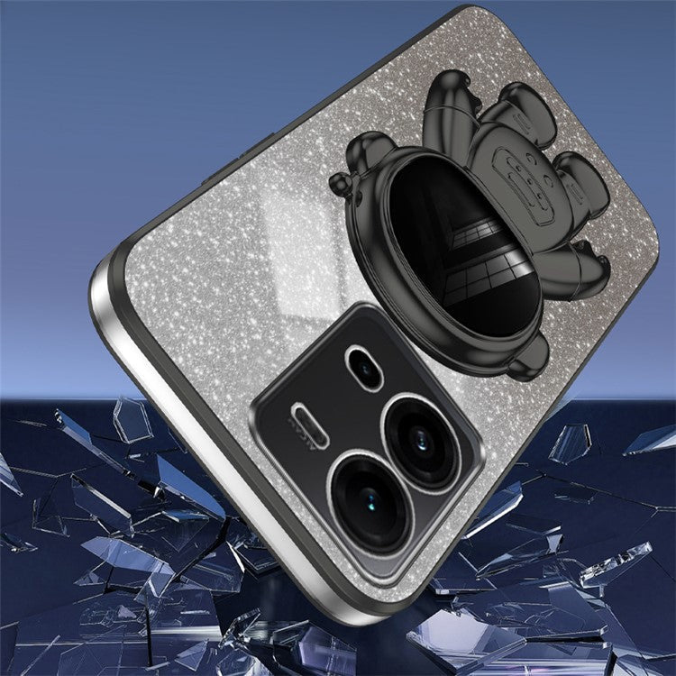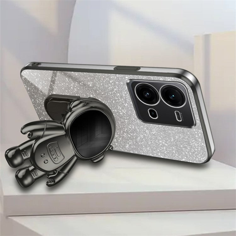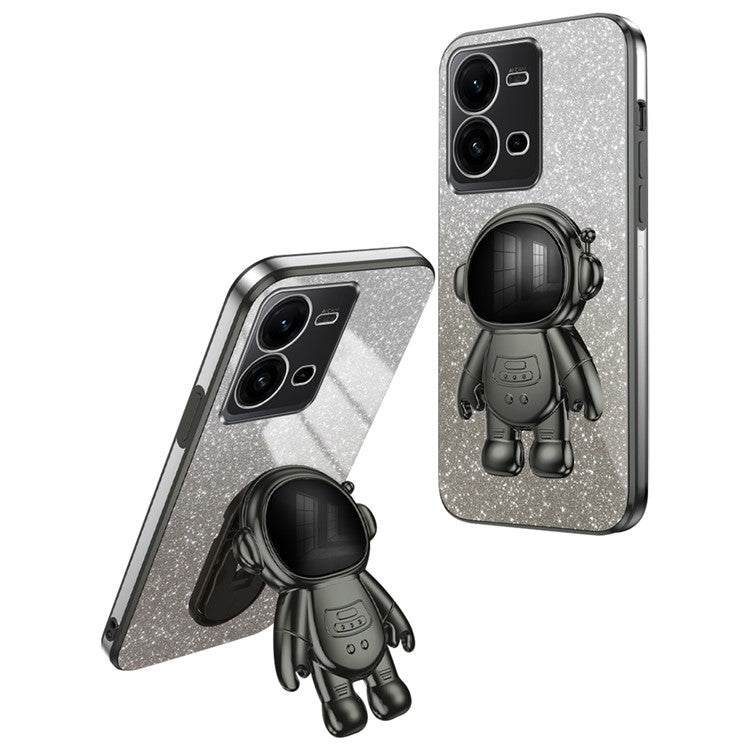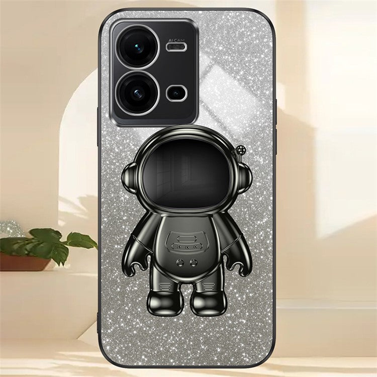 Anti-Scratch Phone Case for vivo V25 5G Astronaut Kickstand PC+TPU Cover Phone Shell - Black