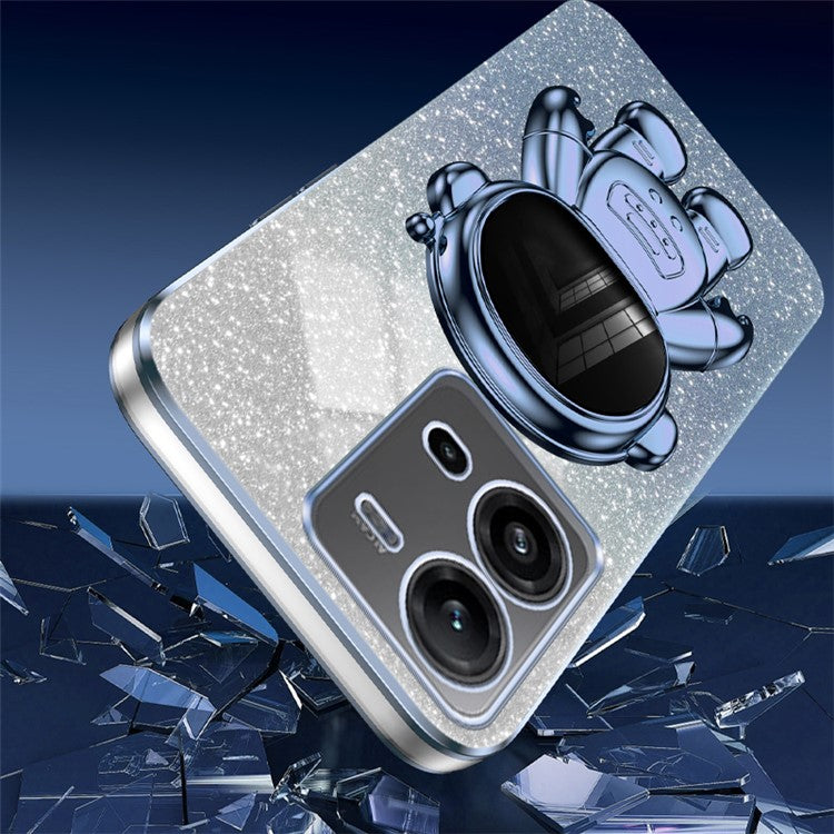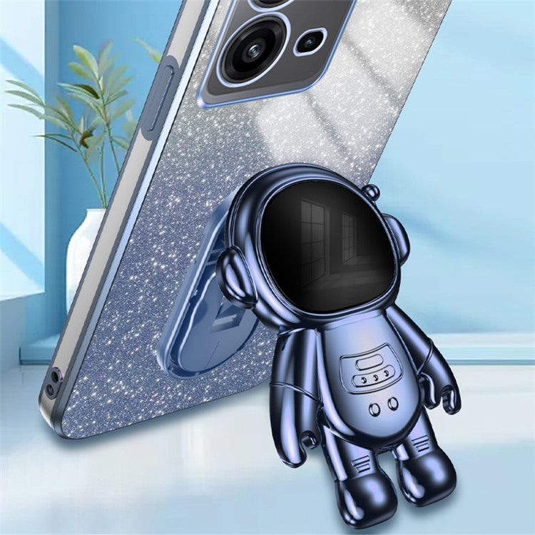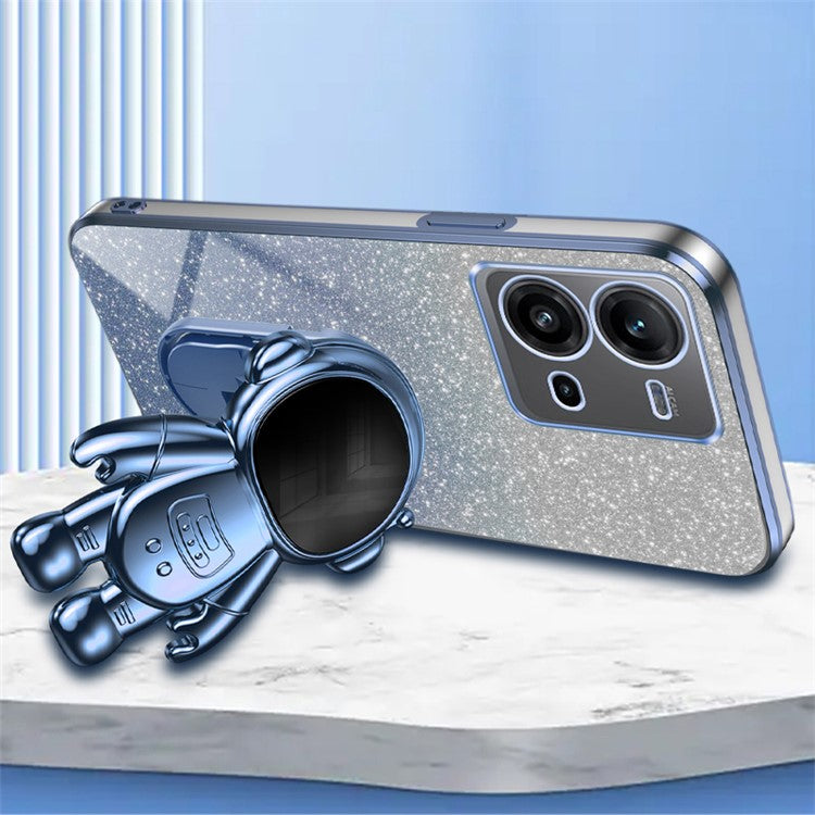 Anti-Scratch Phone Case for vivo V25 5G Astronaut Kickstand PC+TPU Cover Phone Shell - Blue