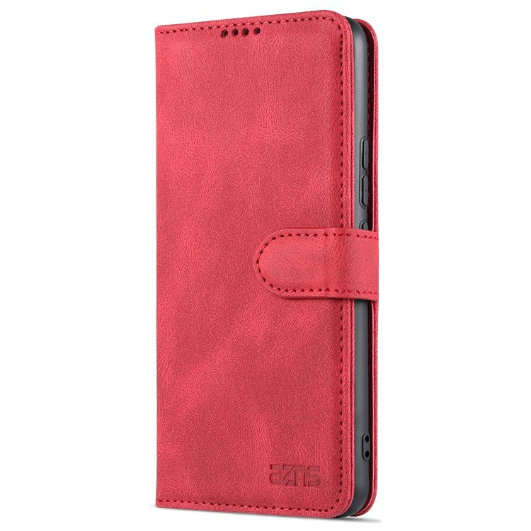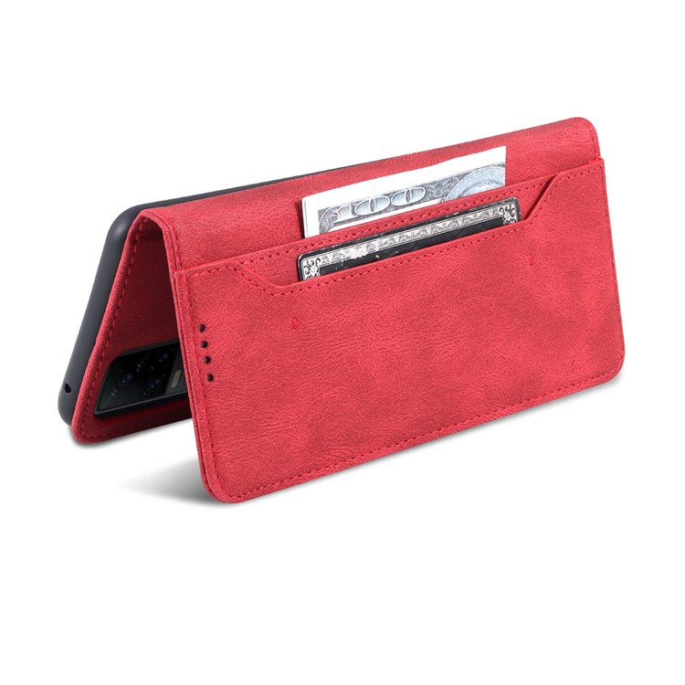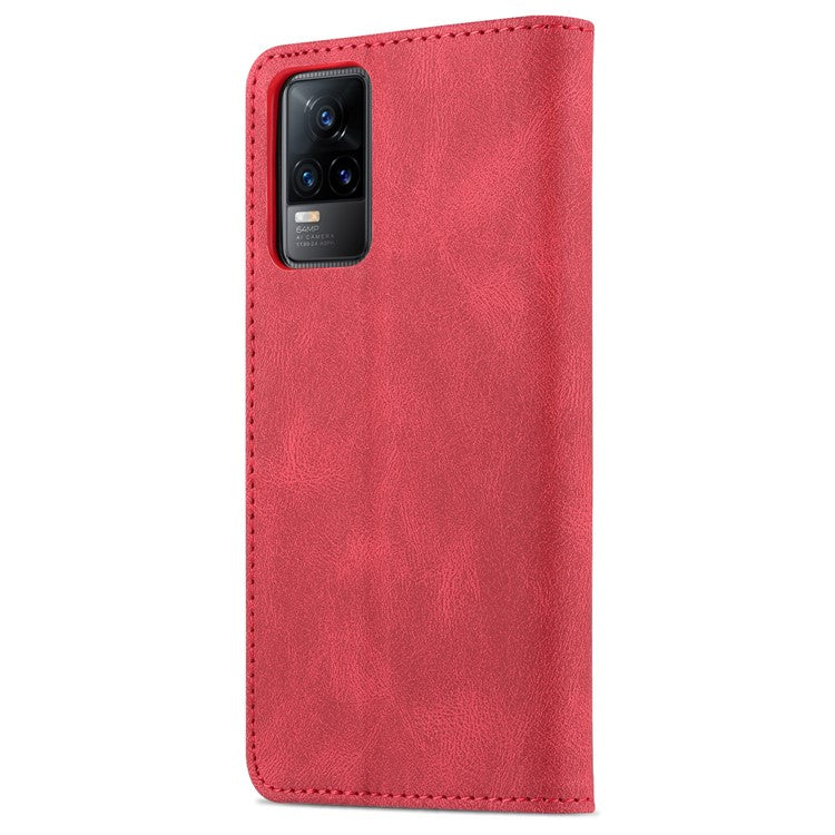 AZNS Anti-Scratch Wallet Design Phone Case Shockproof Flip Phone Cover with Stand for vivo V21e 4G / vivo Y73 - Red