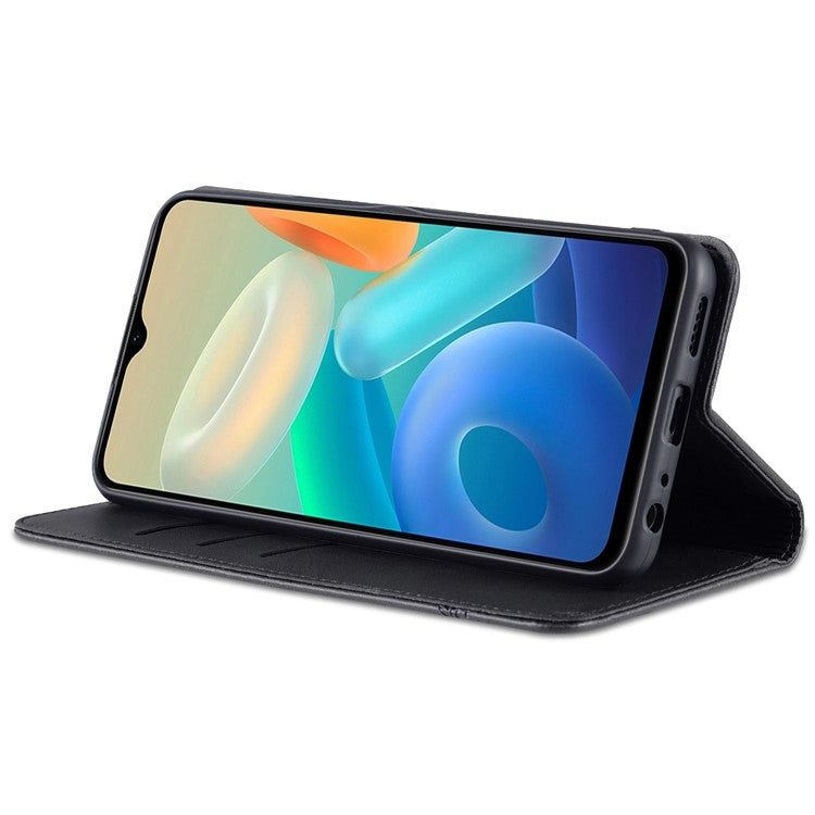 AZNS Auto-absorbed Magnetic Leather Phone for vivo Y74s/Y76s, Folio Flip Wallet Stand Protective Shell - Black
