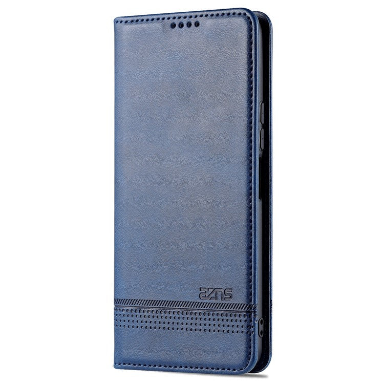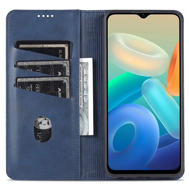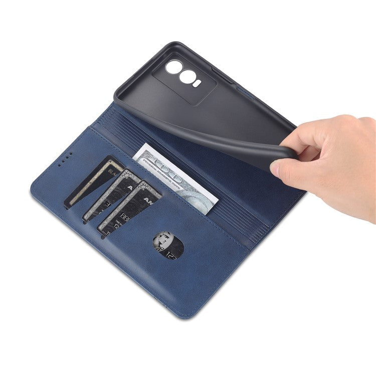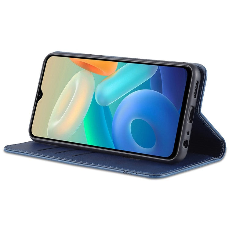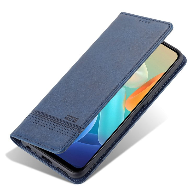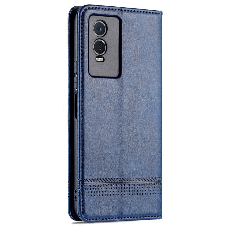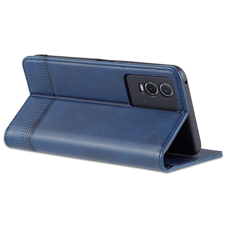 AZNS Auto-absorbed Magnetic Leather Phone for vivo Y74s/Y76s, Folio Flip Wallet Stand Protective Shell - Dark Blue