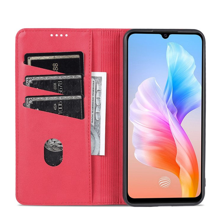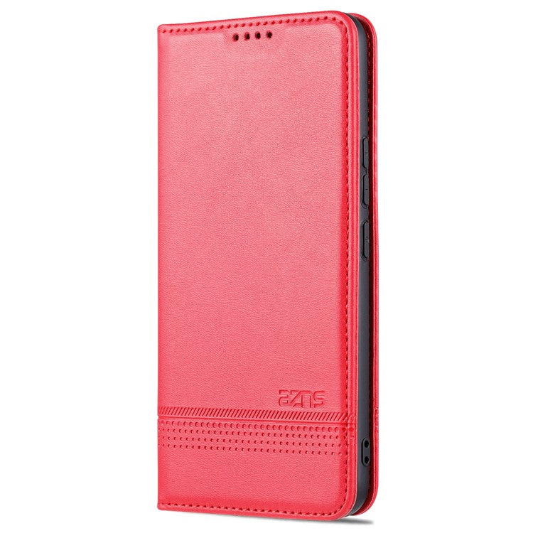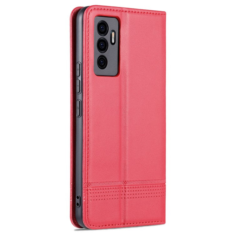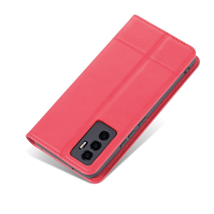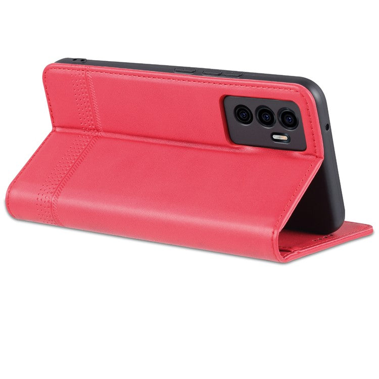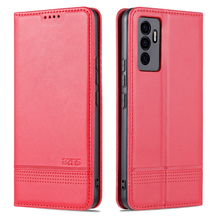 AZNS Book Stand PU Leather Phone Case Magnetic Auto-absorbed Wallet Flip Cover for vivo S10e / V23e 4G - Red