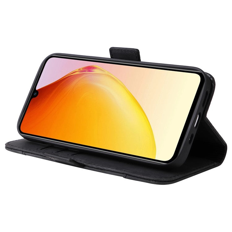 BETOPNICE 001 For vivo V25 5G / V25e 4G Imprinted Stitching Line Stand Wallet Case PU Leather Magnetic Clasp Cover with Strap - Black