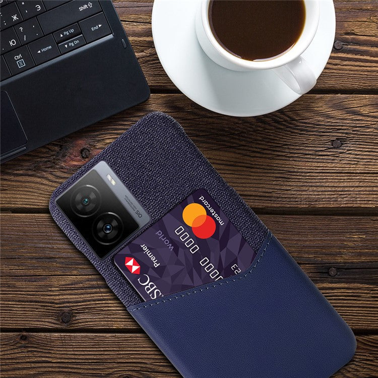Card Holder Case for vivo iQOO Z7 5G , Cloth Texture PU Leather Coated PC Phone Cover - Blue