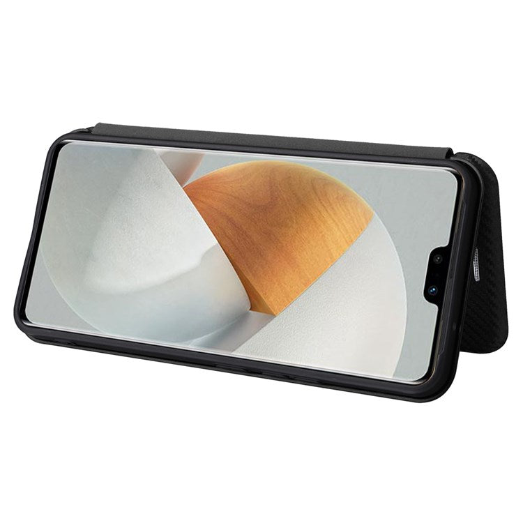 For vivo S12 / V23 5G Card Holder Mobile Phone Case Carbon Fiber Texture Magnetic Auto-absorbed PU Leather Stand Phone Cover - Black