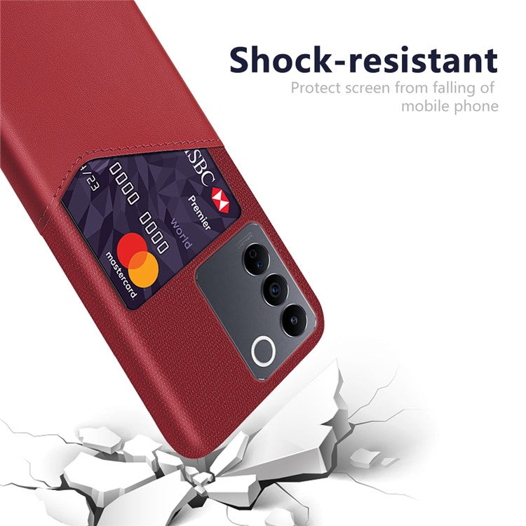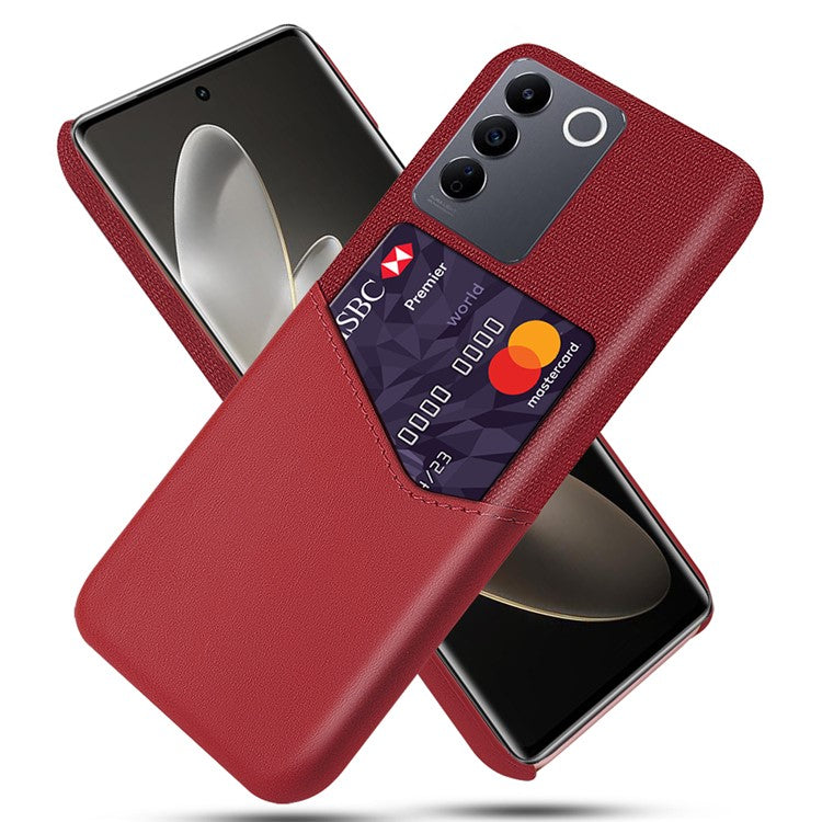 For vivo S16e 5G Cloth Texture Phone Case PU Leather+PC Protective Back Shell with Card Slot - Red