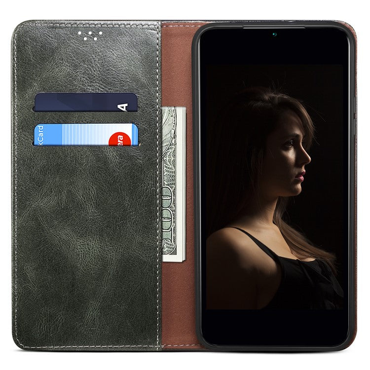 For vivo S16e 5G Wallet Leather Waxy Crazy Horse Texture Phone Case Stand Cell Phone Cover - Green