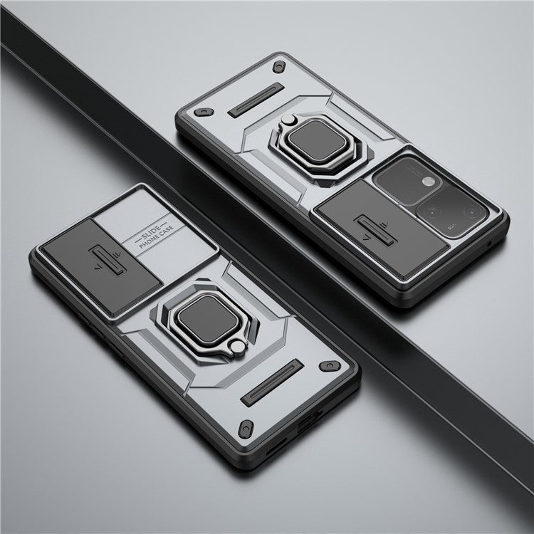 For vivo S18 5G Case Anti-drop PC + TPU Back Cover with Slide Camera Lid - Grey