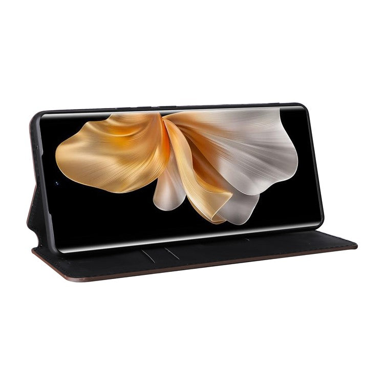 For vivo S18 5G / V30 Case Leather Magnetic Auto Closing Phone Stand Cover - Brown