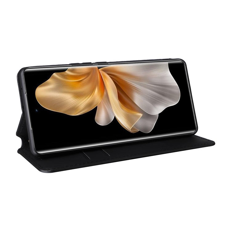 For vivo S18 Pro 5G / V30 Pro 5G Magnetic Case 3D Rhombus Imprinted Leather Wallet Cover - Black