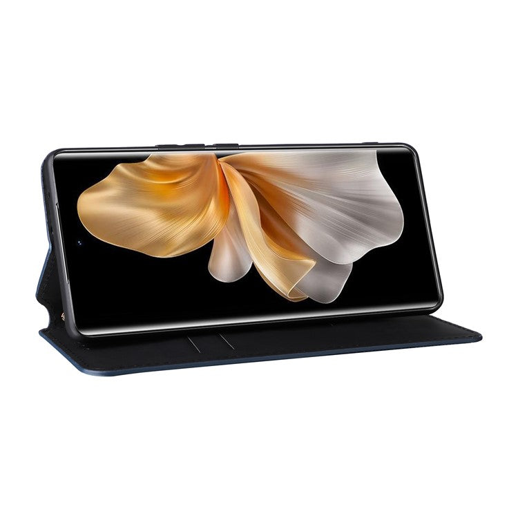 For vivo S18 Pro 5G / V30 Pro 5G Magnetic Case 3D Rhombus Imprinted Leather Wallet Cover - Blue