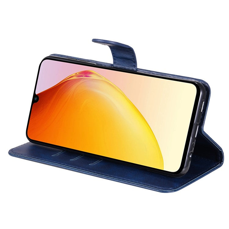 For vivo V25 5G / V25e 4G Calf Texture PU Leather Wallet Phone Case Zipper Pocket Flip Stand Cover - Blue
