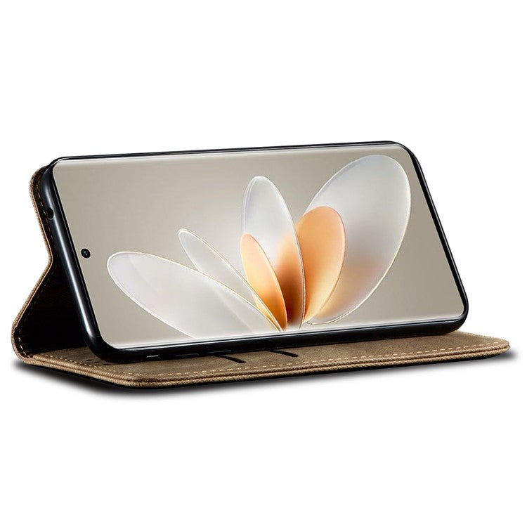 For vivo V27 5G PU Leather Flip Phone Case Jeans Cloth Texture Stand TPU Inner Shell Wallet - Khaki