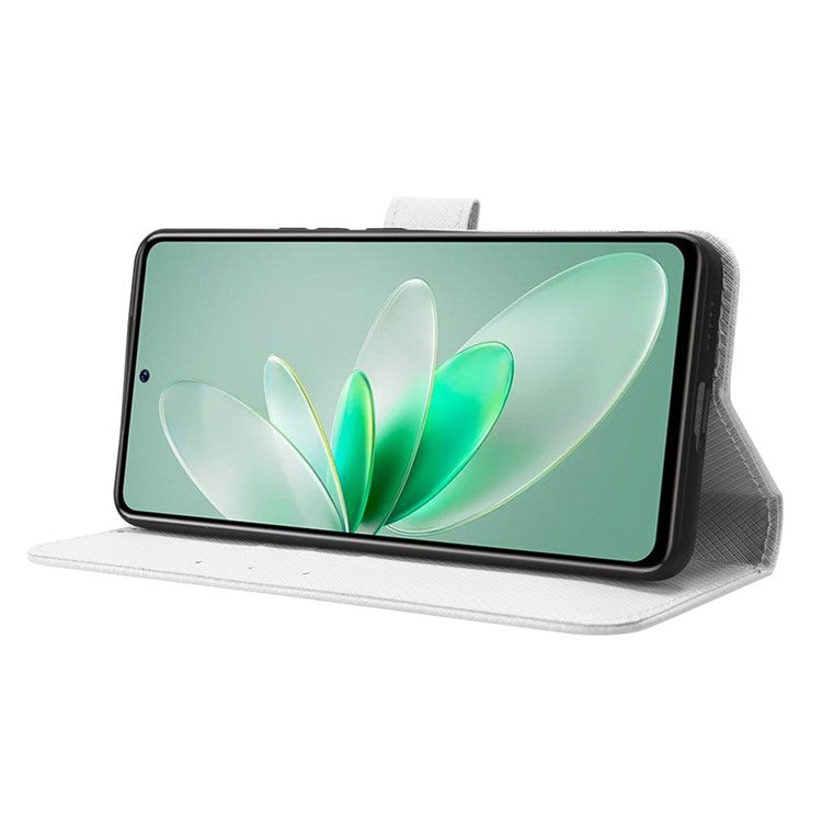 For vivo V27e 5G / S16e 5G Protective Phone Case Diamond Texture Wallet Stand Phone Leather Cover - White