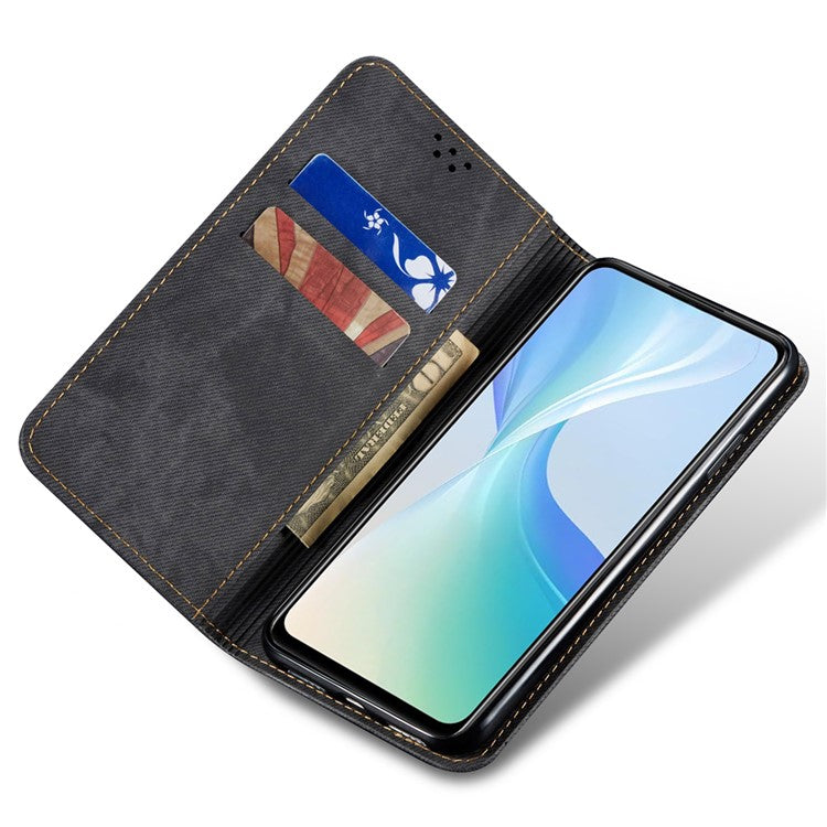 For vivo V50 5G Case Jeans Cloth Texture Anti-Scratch Leather Stand Phone Cover - Black