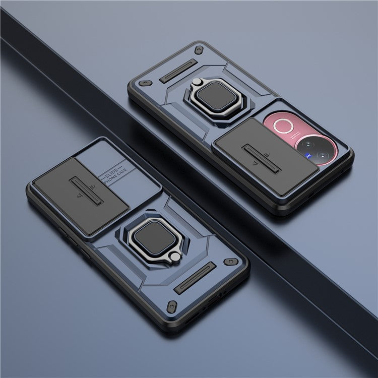 For vivo V50 5G Case PC + TPU Kickstand Phone Protector with Lens Cover - Blue