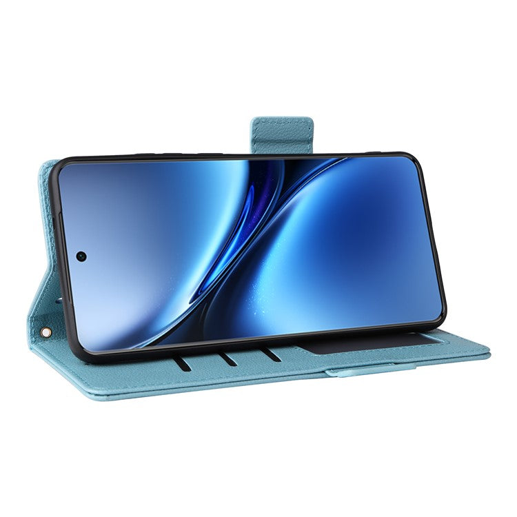For vivo X200 Pro 5G Case Litchi Texture PU Leather Wallet Flip Phone Cover - Baby Blue