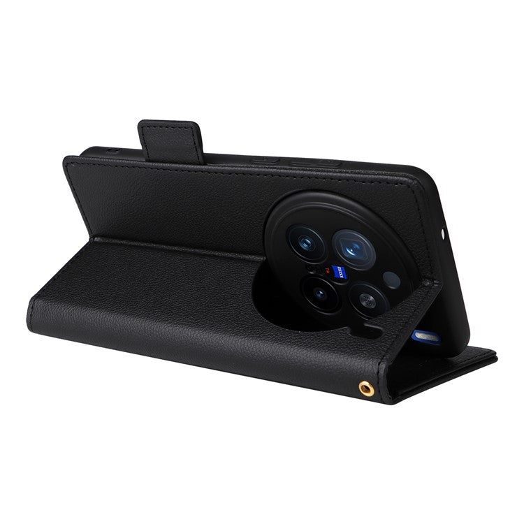 For vivo X200 Pro 5G Case Litchi Texture PU Leather Wallet Flip Phone Cover - Black