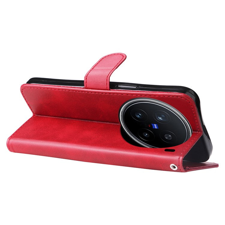 For vivo X200 Pro 5G Case Zipper Wallet Calf Texture PU Leather Phone Cover - Red