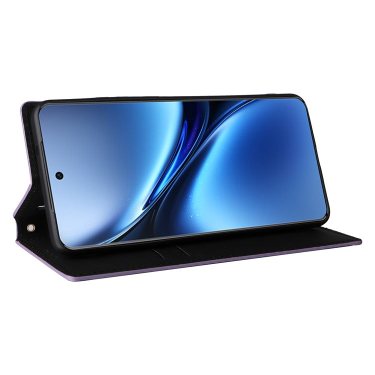 For vivo X200 Pro 5G Wallet Case Rhombus Imprinted Leather Phone Cover - Purple