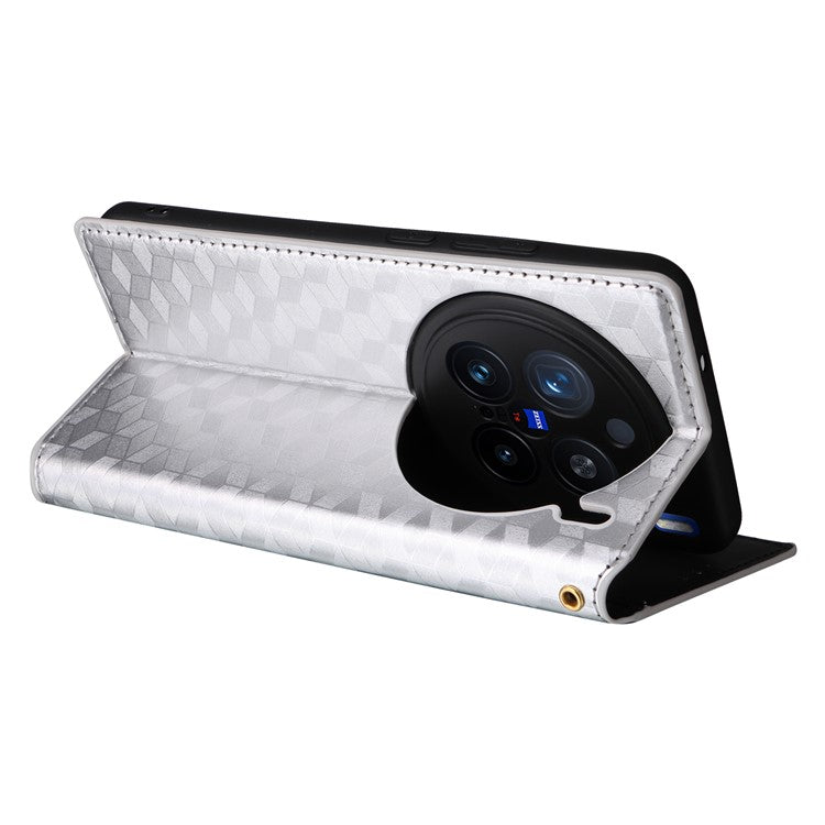 For vivo X200 Pro 5G Wallet Case Rhombus Imprinted Leather Phone Cover - Silver